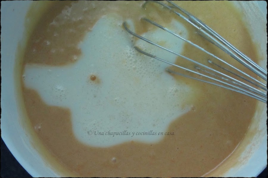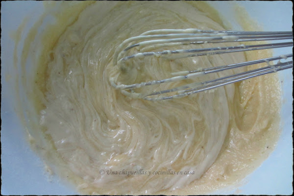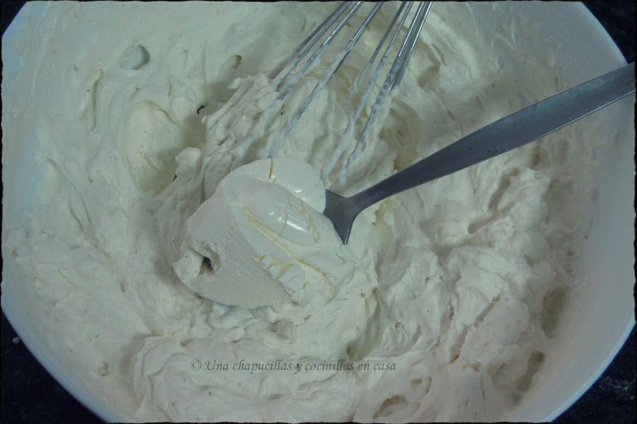 Una vez montada, incorporar la cucharada de queso crema, reservar en la nevera.