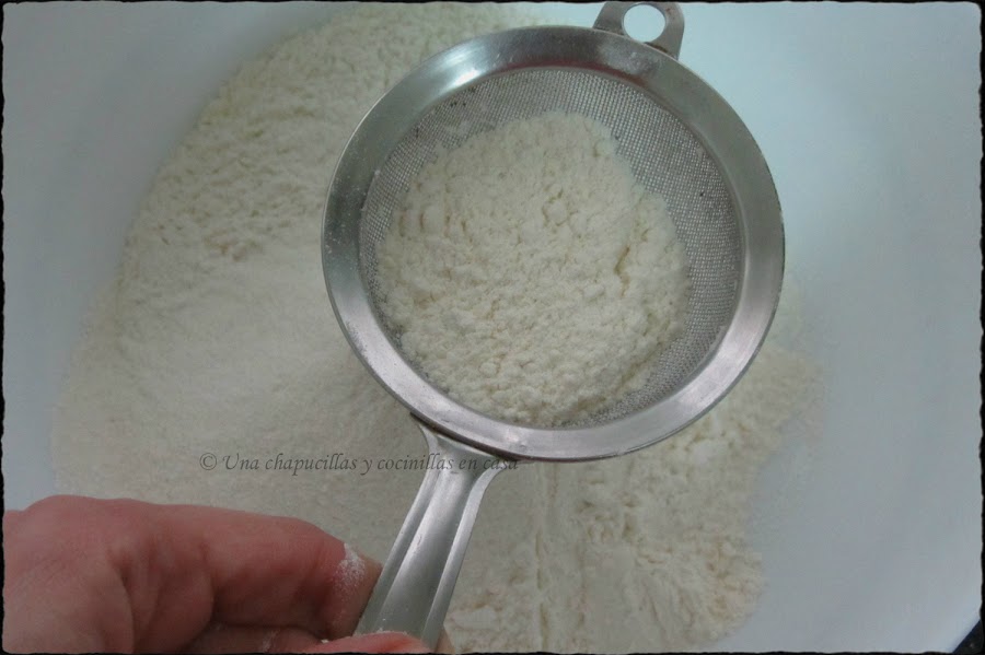 Comenzar preparando el bizcocho, tamizar la harina junto con el sobre de levadura.