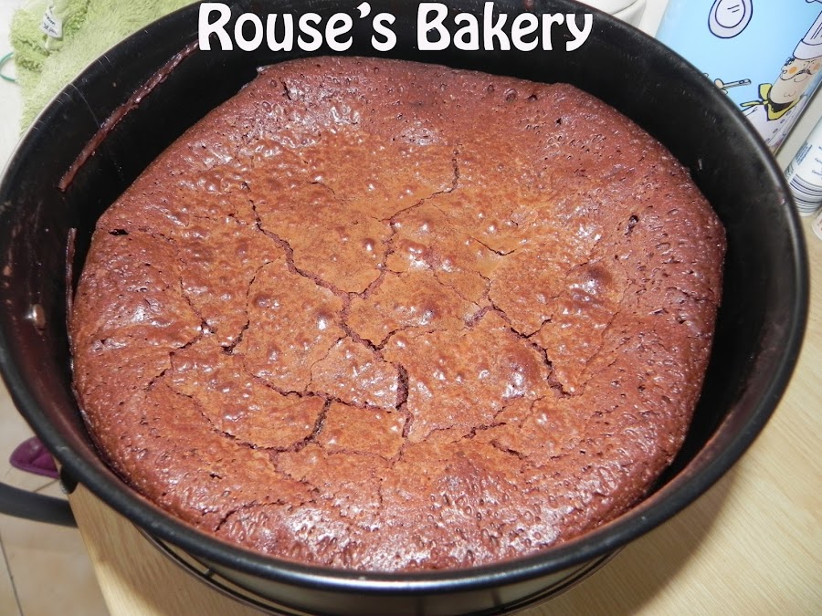 La tarta en principio no tiene un aspecto muy bonito, incluso es normal que se cuartee. Aviso!! No os asusteis si os pasa como a mi, cuando la saqué del horno había subido casi hasta el borde del molde (cosa que me sorprendió ya que no lleva levadura) y al rato de estar enfriando había bajado hasta la mitad otra vez jejejeje. Se deja enfríar, y si la dejais en la nevera de un día para otro está mucho más buena. La podeis decorar al gusto, con azúcar glass por encima o cacao, o lo que se os ocurra, como mis amigos son auténticos chocoadictos (sobre todo David) yo le puse una salsita de chocolate negro por encima... parece mucho chocolate pero como el mismo dijo: "Es la cantidad justa de chocolate!!!" jejeje