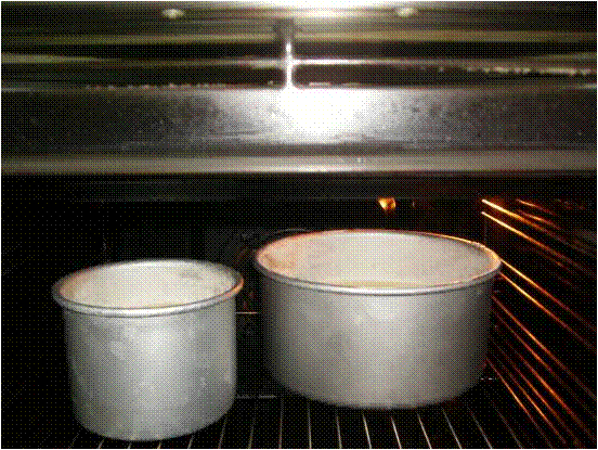 Metemos en el horno precalentado a 170º (yo los cuezo con aire) si el horno es convencional a 180º el del molde pequeño se no va hacer un poco antes que el grande en unos 25 o 30 minutos y el otro algunos minutos mas, pinchamos con una aguja y vemos si sale limpia están cocidos.