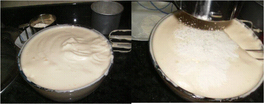 También los podemos batir en el fuego , ponemos una cacerola con un poco de agua y metemos el bol pero sin que el agua cuando hierva toque el bol, así nos levanta antes el batido, los bizcochos genovesa para relleno se hacen así con un poco de calor.