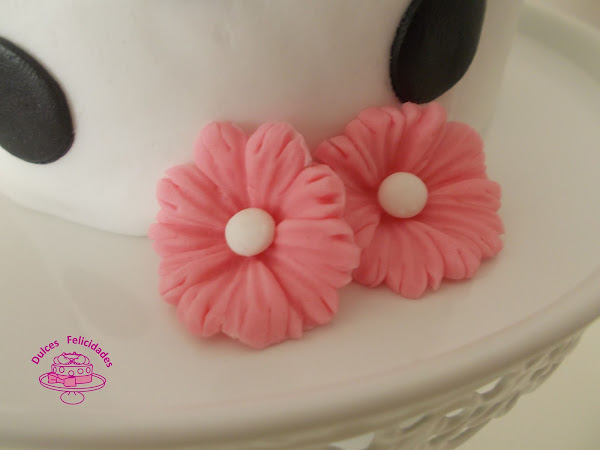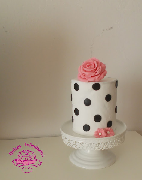 Preparé un poco de atrezzo para el vídeo, entre el que se incluía esta tarta de dos pisos. En primer lugar preparé el piso superior (de lunares), aunque finalmente las flores que utilicé fueron otras.