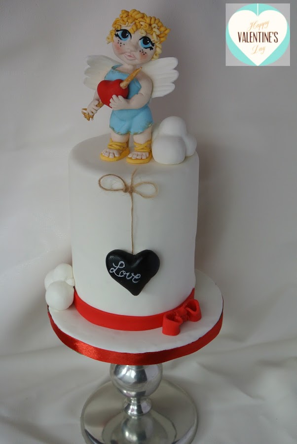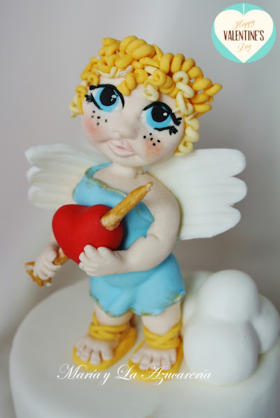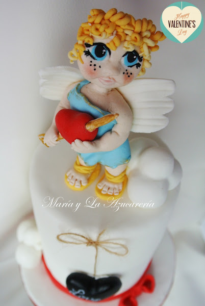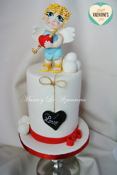 Pues os dejo con mi "dedicatoria" para el día de San Valentín, la tarta está forrada con fondant y mi monísimo cupido está modelado en fondant taabié.
