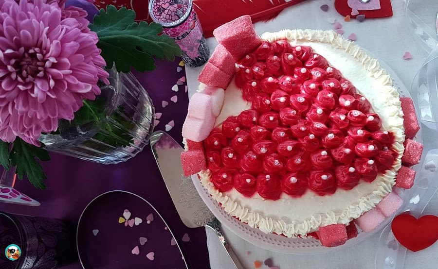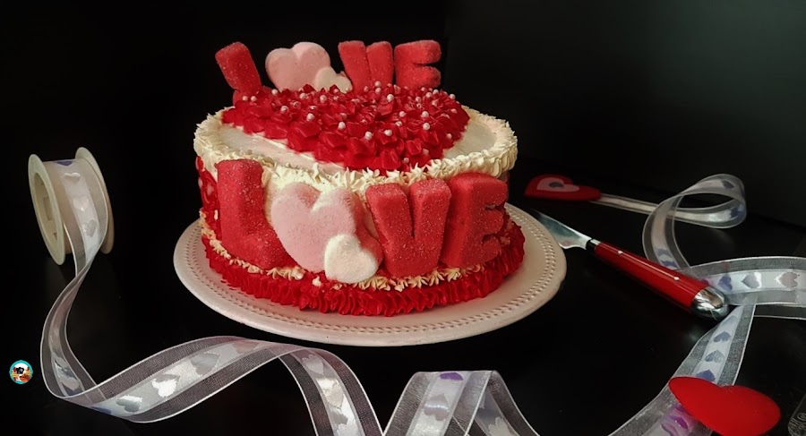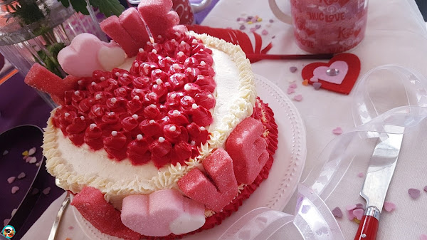 Para celebrar el día de San Valentín a lo grande hoy tienes esta fabulosa tarta. Igualmente te vale para celebrar un aniversario de bodas, compromiso o dar con ella una dulce y romántica alegría a tu pareja.