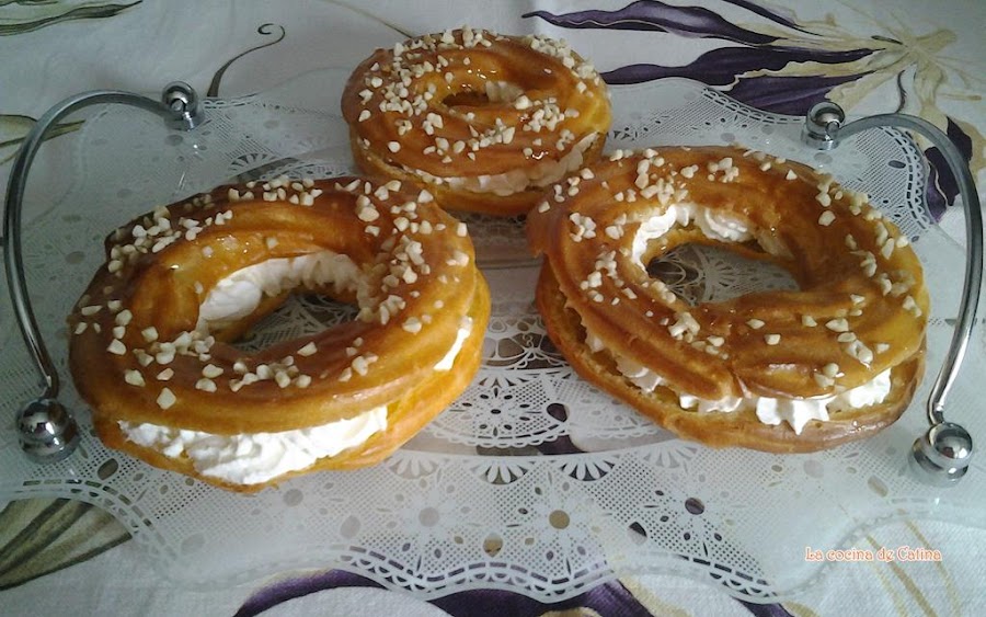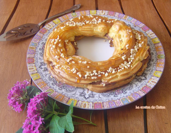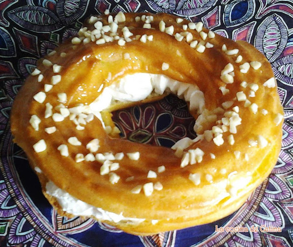 Para este desafío las chicas nos han llevado a París, y de las muchas tartas y cosas ricas de allí, han elegido la tarta Paris-Brest, una tarta hecha con pasta choux en forma de rueda y rellena de crema.