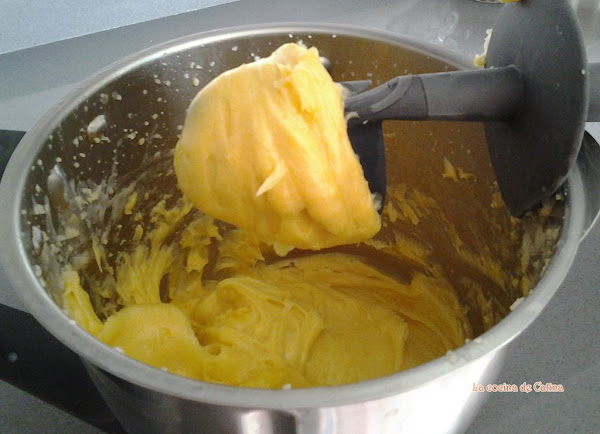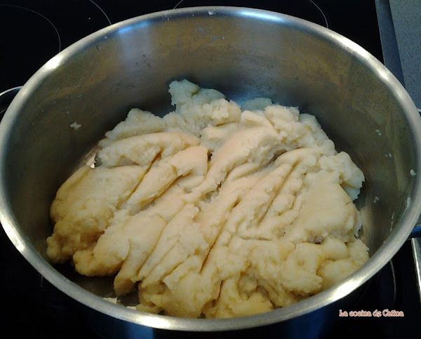 Añadir los huevos uno a uno, removiendo bien para que se queden mezclados suficientemente antes de añadir el siguiente. Cuando se hayan incorporado los 4 huevos, la masa debe quedar lisa y brillante y algo más consistente que una crema espesa.