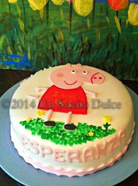 Como la del año pasado fue en 3D, este año decidimos hacerla en 2D, con Peppa como única prtagonista de la decoración y un mensaje muy especial para Esperancita "I love Espe"