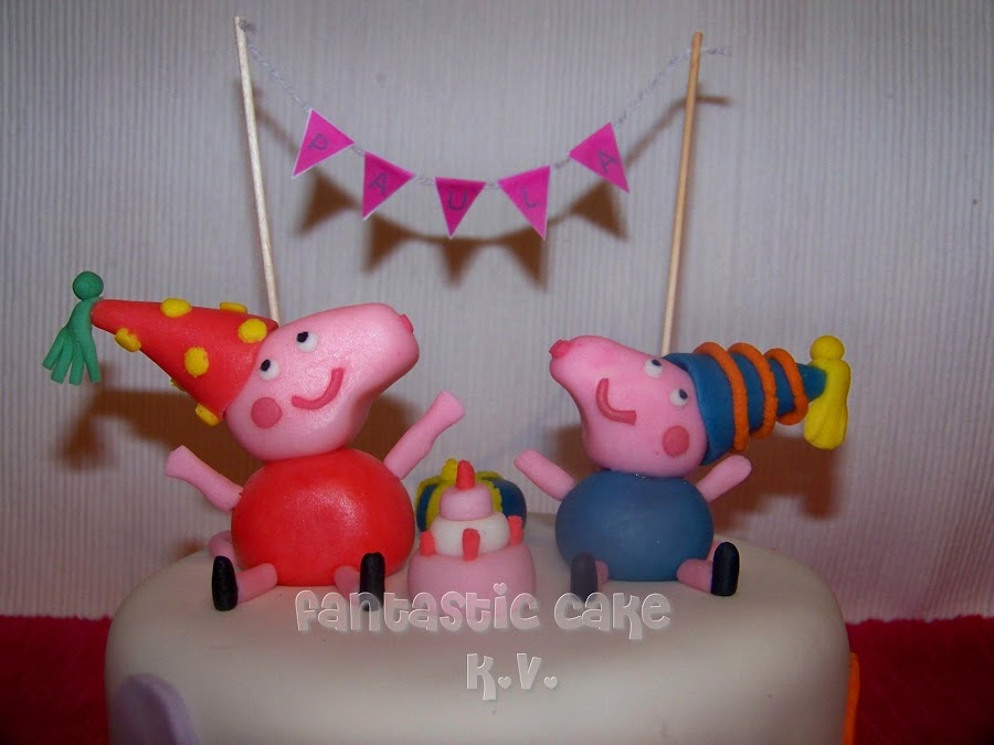 Quería una tarta donde estuviera Peppa y George en una fiesta y que llevara el nombre de Paula en una guirnalda.