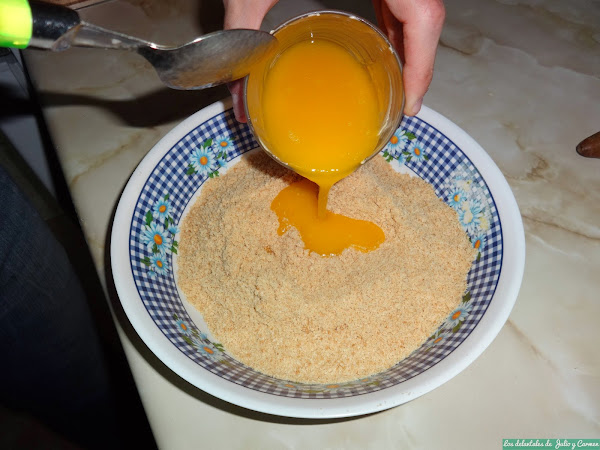 Trituramos las galletas para dejarlas como un fino polvo. Derretimos la mantequilla y la iremos vertiendo poco a poco y removiendo a la vez. Cuando tengamos una masa compacta, dejaremos de verter mantequilla, evitando así que nos quede muy grasienta. Es mejor realizarlo poco a poco ya que, dependiendo del tipo de galletas, de la mantequilla... pueden variar las cantidades.