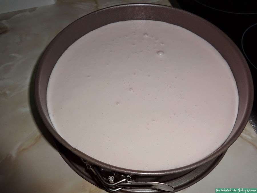 Una vez bien removido, lo verteremos sobre la base de galletas que teníamos en la nevera y dejaremos que cuaje durante unas horas, o de un día para otro mucho mejor.