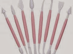 Estiramos el fondant negro para hacer el bigote, la perilla, el ojo y el parche, utilizando las estecas para modelar (ver imagen) ya que facilitan mucho este paso. Pegamos todas estas partes de la cara con pegamento comestible. Si no tenéis, también se puede hacer con un poquito de agua.