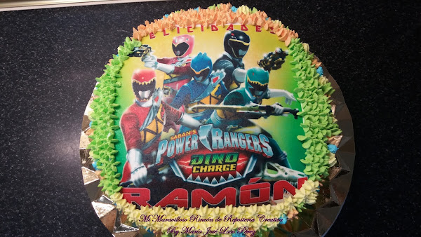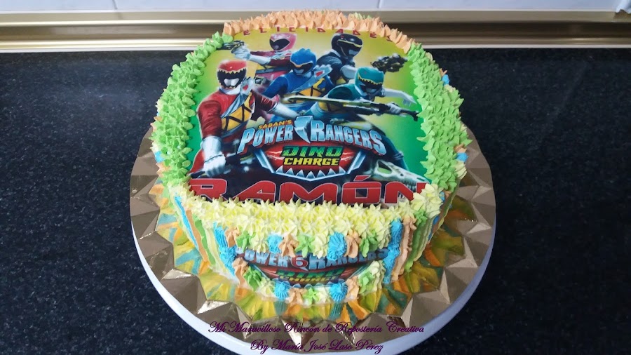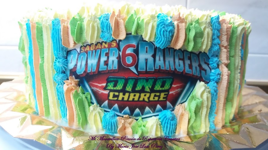 Y este año... ¡les ha tocado el turno a los Power Rangers Dino Charge! .¡Todos los niños están entusiasmados con estos dibujos animados! ¡Pues ésta es la tarta de cumple de los seis años ! ¿Qué os parece?
