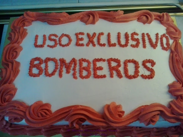 Como eran muchos invitados, les hice una tarta adicional con el cartel de "uso exclusivo bomberos".
