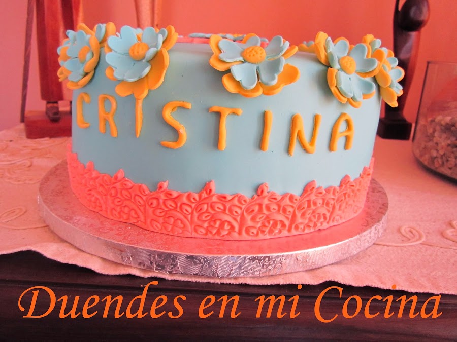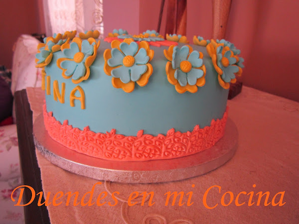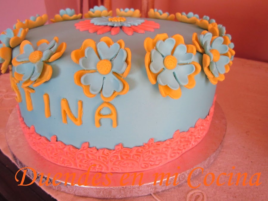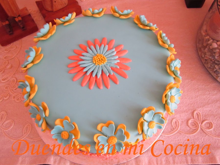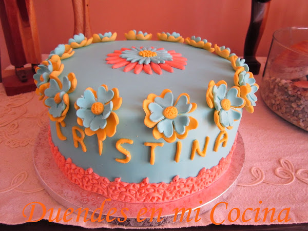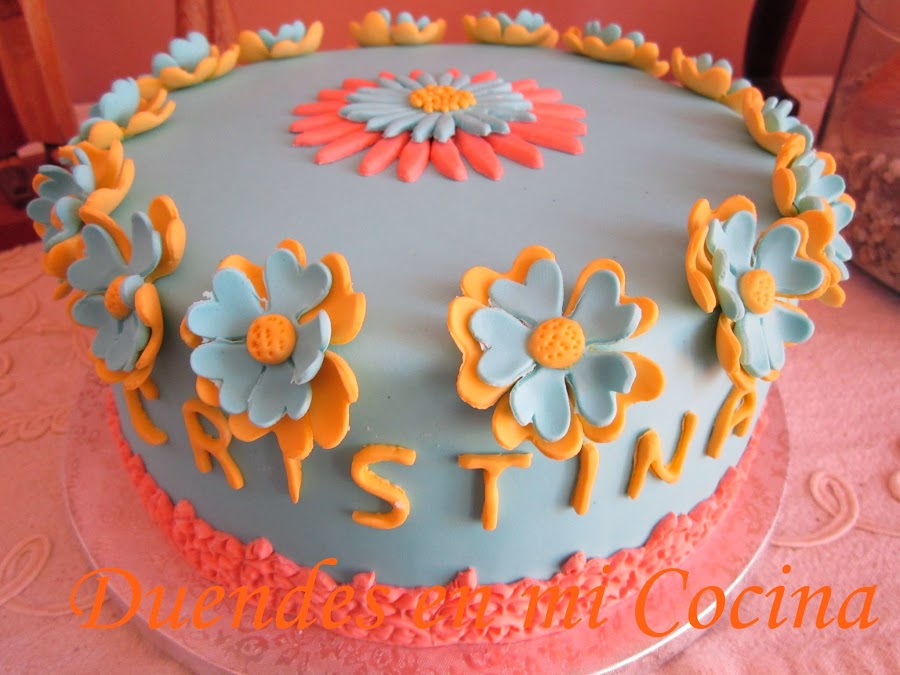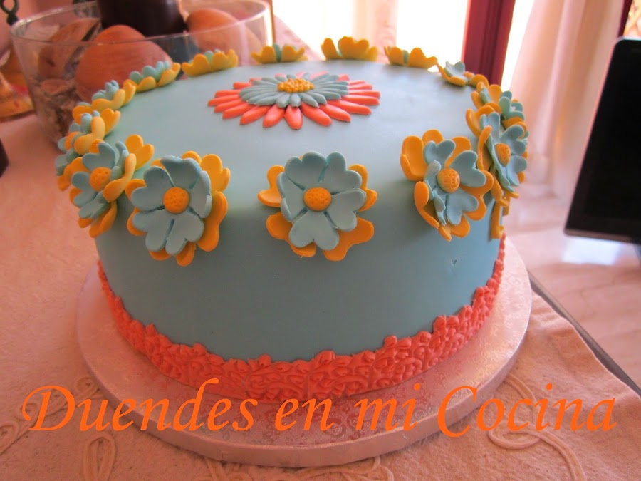 En esta ocasión me pidieron que les hiciera una tarta muy primaveral, con el color predominante turquesa y que sobre todo reflejara la primavera, y qué mejor reflejo que los flores??