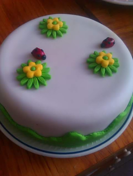 Hoy os traigo un rico bizcocho forrado de fondamt, como veis es una decoración sencilla pero que luce. Como veis no soy ninguna experta en tartas de fondant pero si me atrevo con alguna visita. Para el bizcocho necesitaremos estos ingredientes: 3 huevos, 150gr de azúcar, 1 yogur de limón, 250gr de harina, 1 sobre de levadura, 50ml de aceite, ralladura de limón. Batimos con unas varillas los huevos y el azucar. Agregamos el yogur, la ralladura y el aceite. Tamizamos la harina con la levadura y la incorporamos a la mezcla anterior. Yo he usado mi fussioncook para hornearla menú cake 40 min y válvula abierta. En horno convencional hay que precalentarlo y después incorporamos nuestro bizcocho a 180°c durante unos 50 min. Cuando el bizcocho este totalmente frío preparamos nuestro fondant yo en este caso he cubierto de fondant blanco y con la ayuda de colorante rojo he hecho unas mariquitas, las flores están hechas de fondant verde, blanco y amarillo. Puedes decorar a tu gusto y creo que con practica podremos ir mejorando las decoraciones.