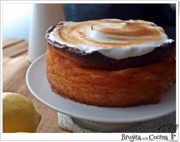 Viendo una revista aparecía una lemon pie, y es que la combinación de limón con merengue es tan buenaaa que en mi cabeza se encendió una bombillita y ya la tenía liada, tarta de queso + lemon pie igual a un resultado espectacular.
