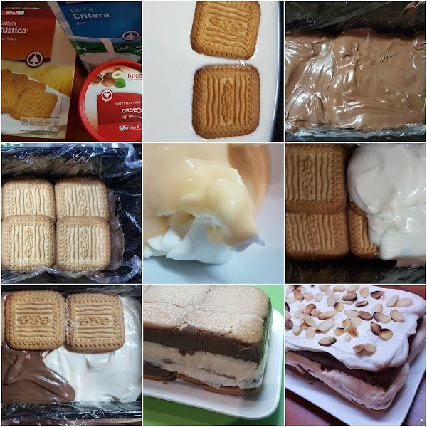Hoy toca receta dulce, una rica tarta de galletas con crema de chocolate y crema de queso con natillas.