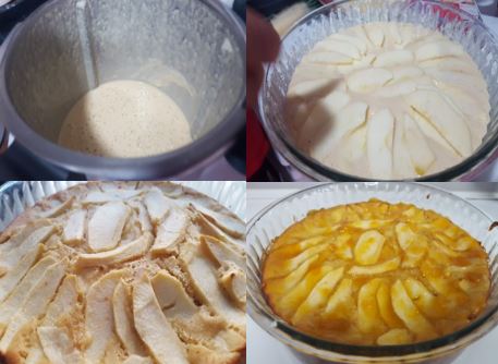 4.- Volcamos la mezcla sobre el molde y lo cubrimos con las otras dos manzanas, peladas y cortadas en láminas.