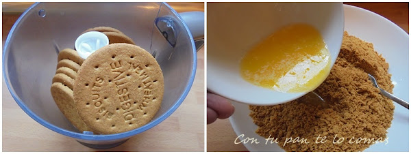 3. Mezclar las galletas en polvo con la mantequilla y reservar.