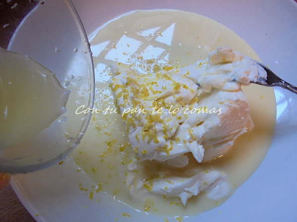 4. En un recipiente mezclar el resto de los ingredientes: el queso, la leche condensada, el jugo del limón y la ralladura.