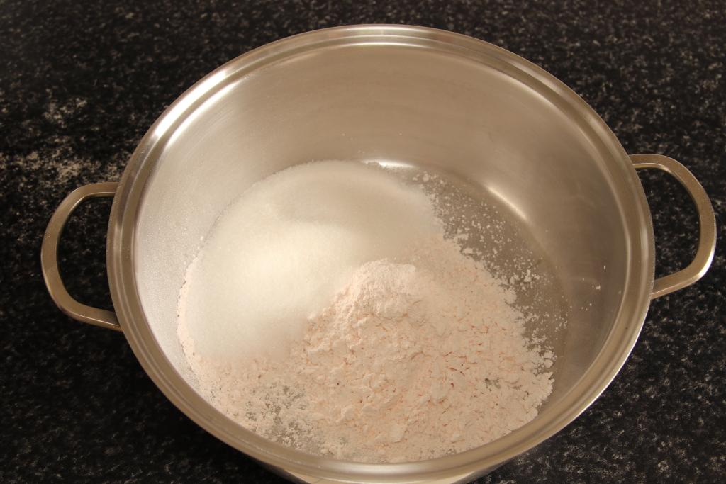 Mezclamos bien los dos sobres de preparado de flan con el azúcar.