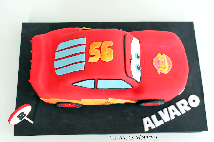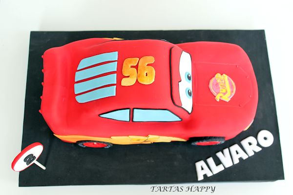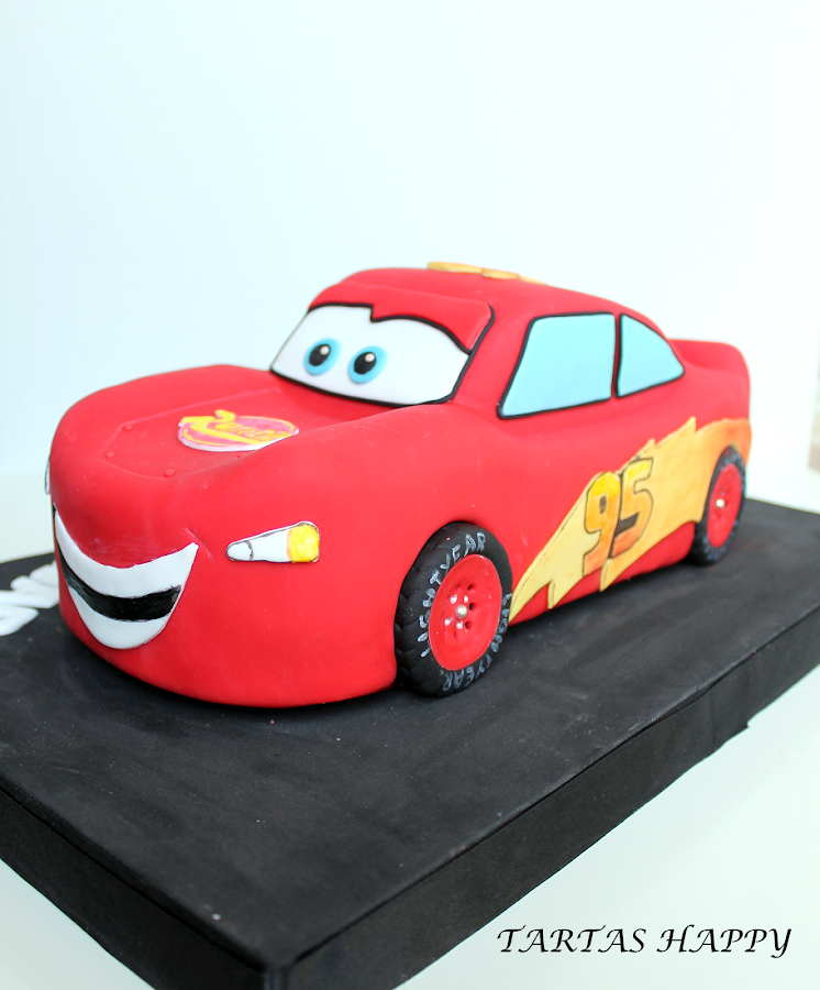 Ya había hecho algunas tartas de Cars ,siempre eran con los coches modelados,pero esta es la primera vez que hago la tarta en forma de coche de Rayo Mcqueen.