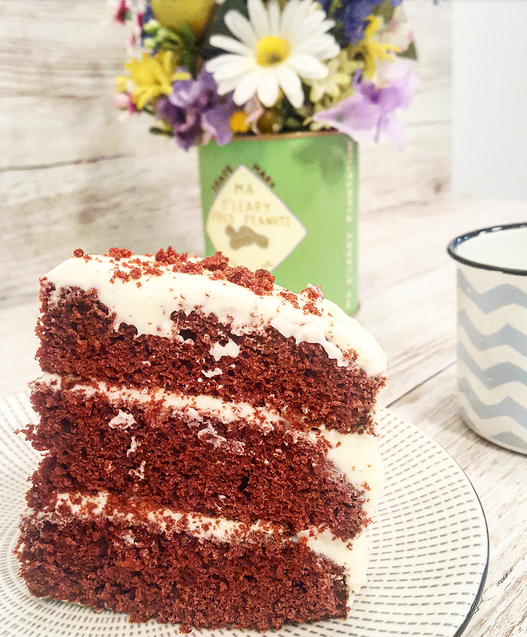 Es una TARTA RED VELVET. Es perfecta para cualquier momento porque está riquísima pero para San Valentín queda genial por su color rojizo.