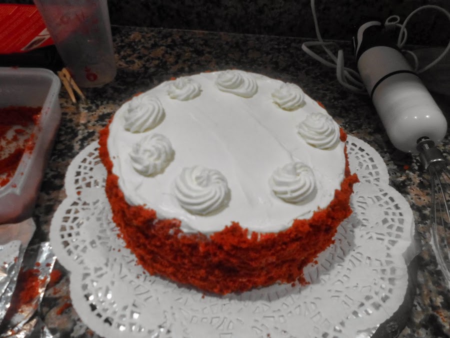 180gr de mantequilla, 200g de azúcar, 3 huevos, 450g de harina, 40g de cacao en polvo, 3 ml de leche, 2 cucharadas soperas de levadura, colorante rojo (yo he usado en pasta), 1 cucharadita de bicarbonato, 2 cucharaditas de vinagre, una pizca de sal. Y mi toque personal... 3 cucharadas soperas de granadina.