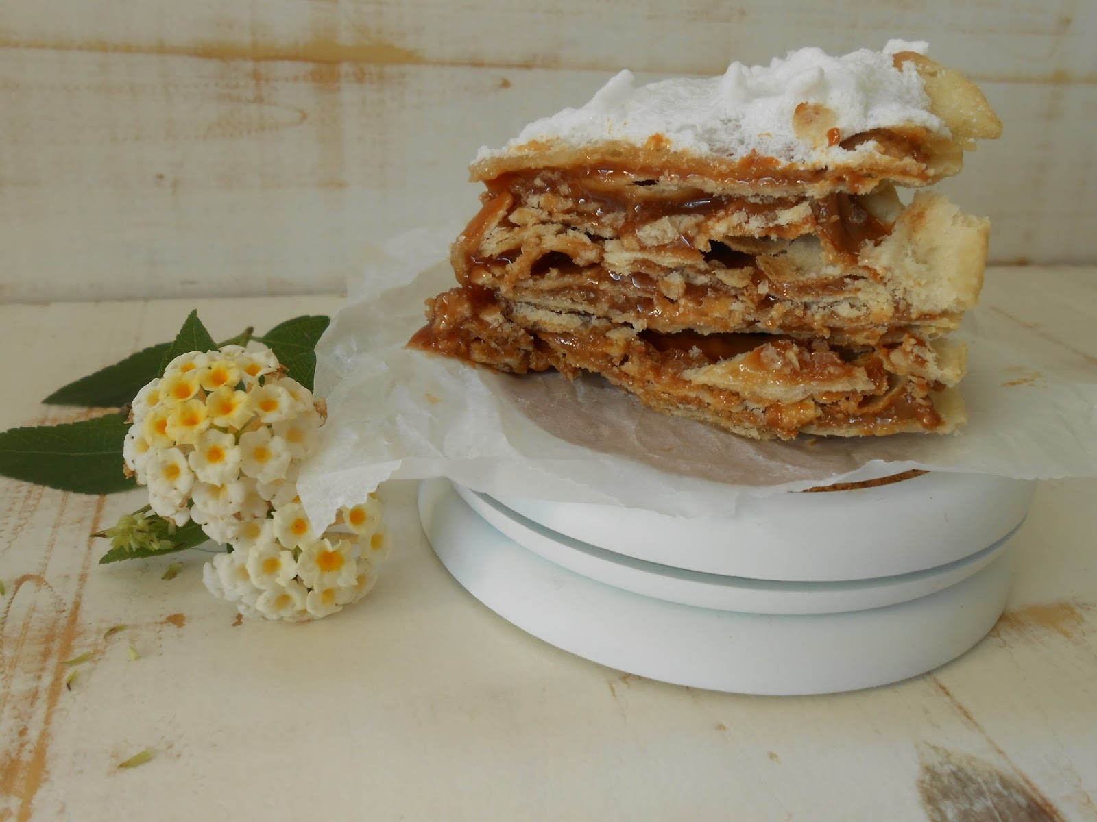 Como cada 25 de mes toca receta para participar en el Reto Alfabeto Dulce que organiza Ana del blog cookthecake y el ingrediente estrella es el DULCEDELECHE, si, si, si...y aunque crean que lo tenía fácil, no fue así, porque postres con dulce de leche hay milesssssssss y no sabía cuál hacer, pero al final me decanté por esta tarta tipiquísima de mi tierra y como es muy fácil...como es muy rica, me deicidí a hacerla y en casa agradecidos, jajaja...