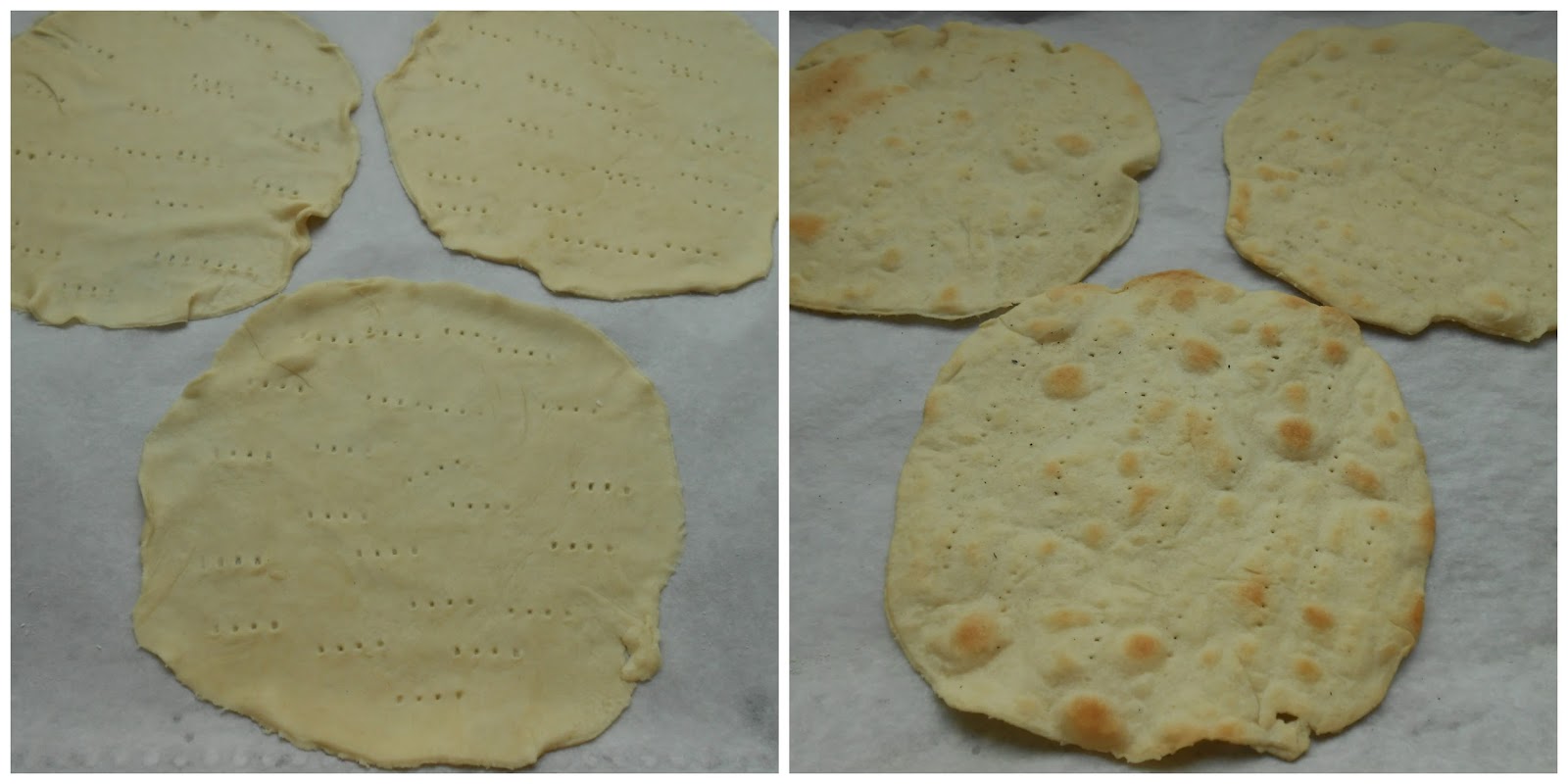 Colocar en la bandeja para horno pinchando bien con un tenedor cada círculo de masa y cocinar en horno a 180º durante 7 u 8 minutos aproximadamente. Recuerden que cocino en un horno a gas, con calor sólo de abajo y en la rejilla central.