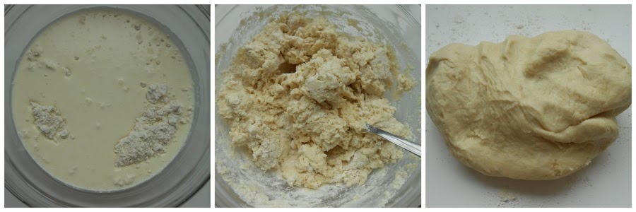 Colocar en un bol la harina con la sal y añadir la nata (crema de leche) mezclando bien hasta obtener una masa suave que no se pega a los dedos.