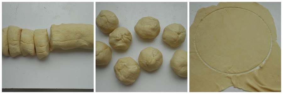 Estirar con rodillo cada bola y cortar de forma circular. La masa sobrante se puede reutilizar sin problemas.