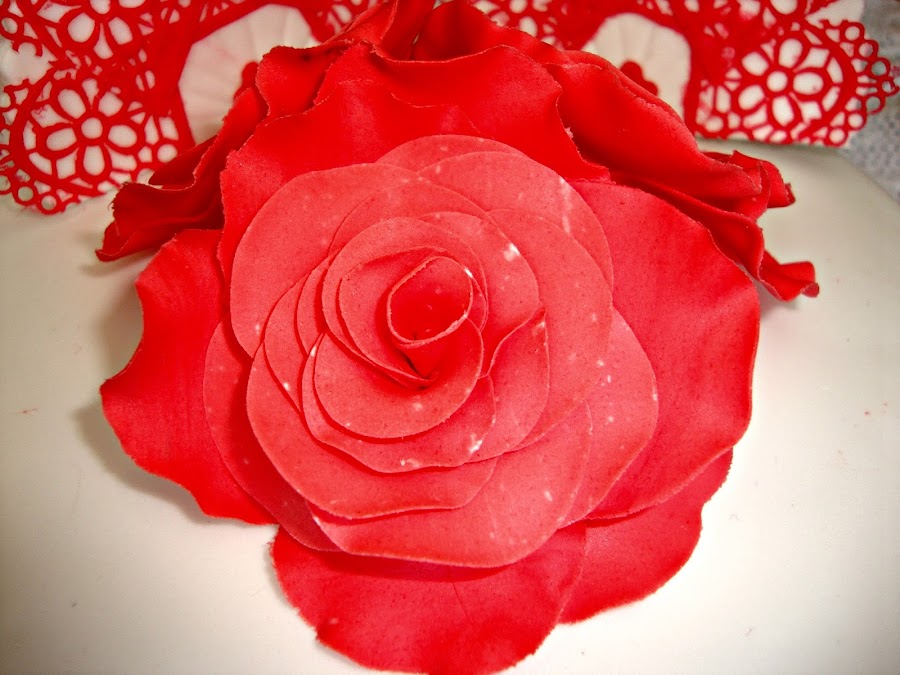 Los abanicos están realizados con fondant y encaje comestible.