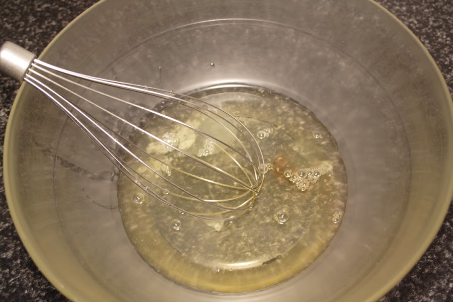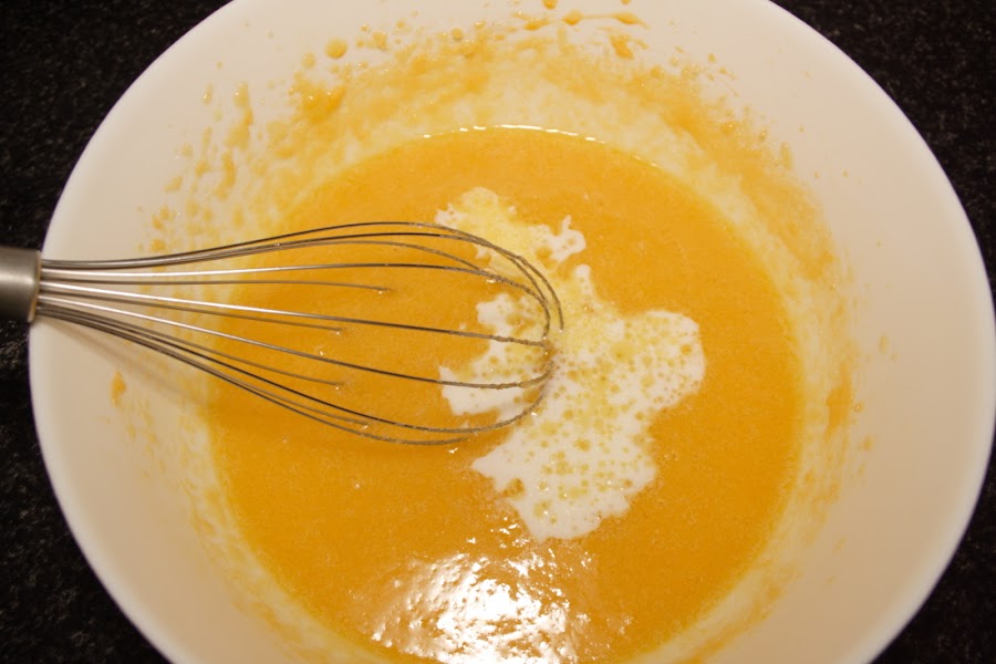 En otro bol grande, ponemos las yemas, las batimos con las varillas, añadimos el resto del azúcar, el aceite de oliva y las dos cucharadas de leche. Removemos bien con las varillas de la batidora.