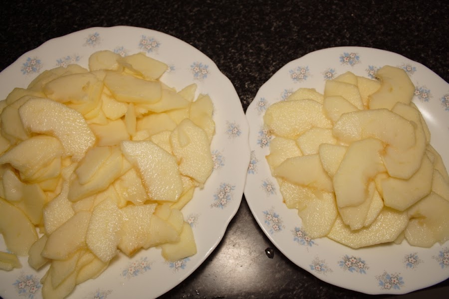 Escurrimos bien las manzanas, dejamos lo gajos mas bonitos para poner el la última capa.