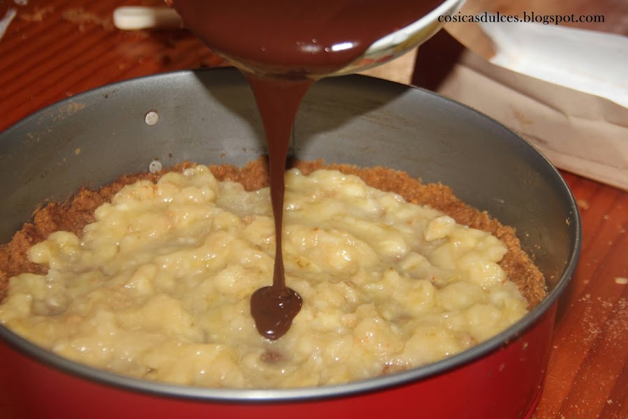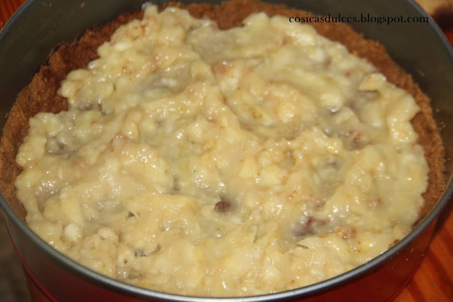 Vertemos sobre la base los plátanos machacados y reservamos.