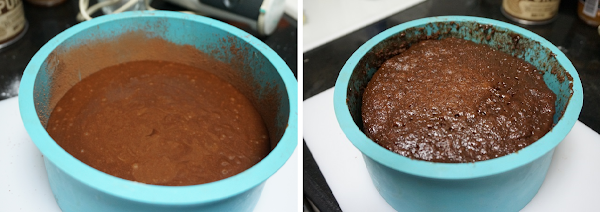 Añadimos la mezcla al molde. Lo introducimos al microondas 5 minutos a 750 W o 4 minutos a 900 W. Cuando pare el microondas dejamos dentro el molde reposar 10 minutos. Aunque quede algunos lados el chocolate un poco sin terminar de hacer no pasa nada, ciando se enfríe de queda bien.