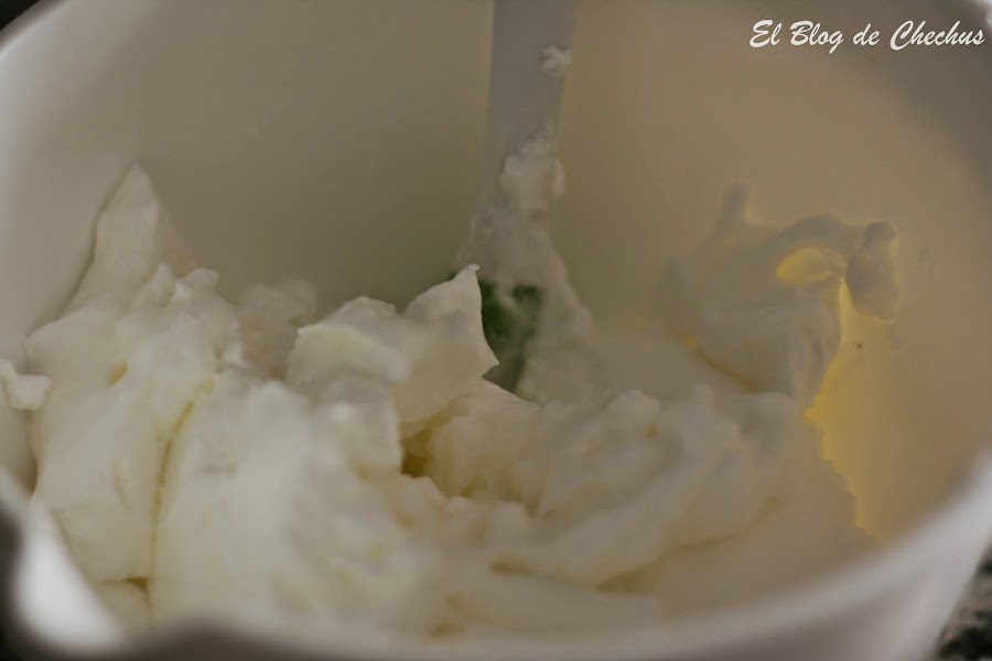 Lo primero que hacemos es separar las claras de las yemas de los huevos. Con ayuda de una batidora eléctrica montamos las claras a punto de nieve con los 40 gr de azúcar y un pellizco de sal.