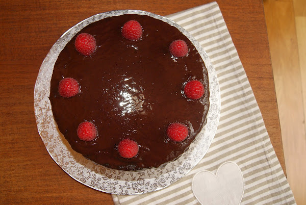 150 gr.de mermelada de frambuesa (la receta original la lleva de albaricoque, pero a mí me gusta el contraste del chocolate con la frambuesa)