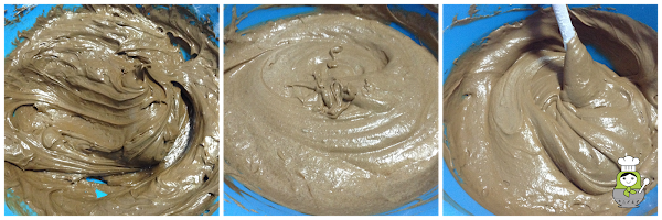 Batimos las claras a punto de nieve con el azúcar blanco y las incorporamos, con movimientos envolventes, al resto de la masa. Por último, hacemos lo mismo con la harina tamizada.