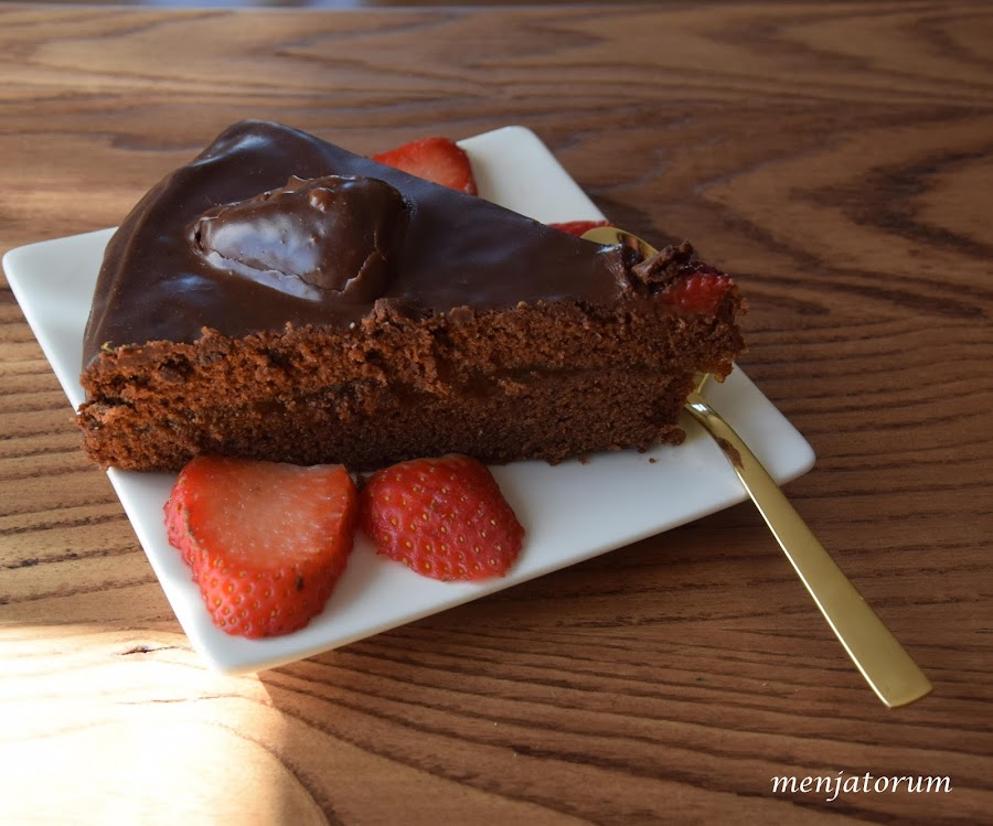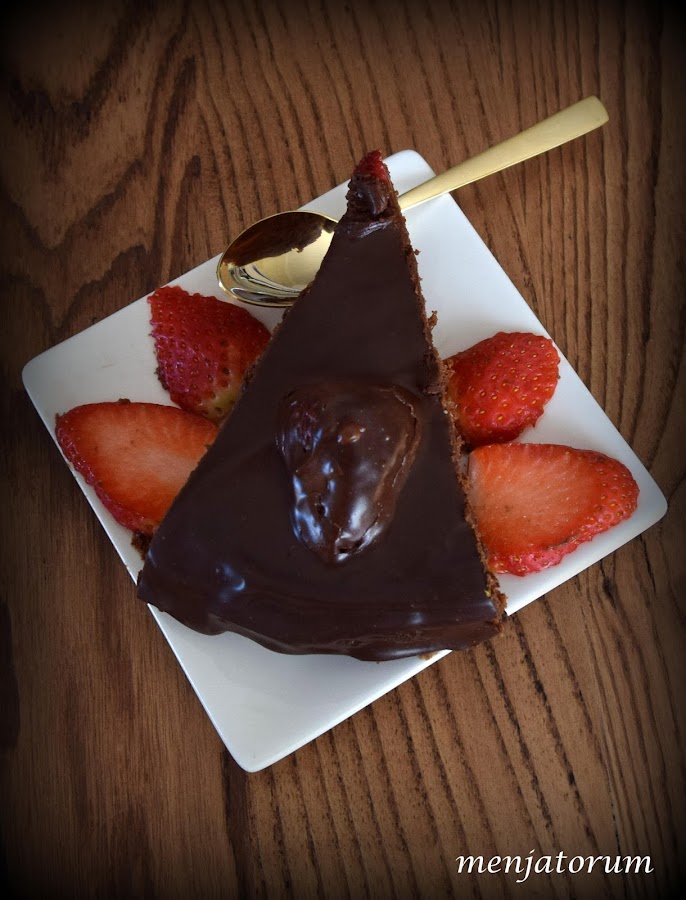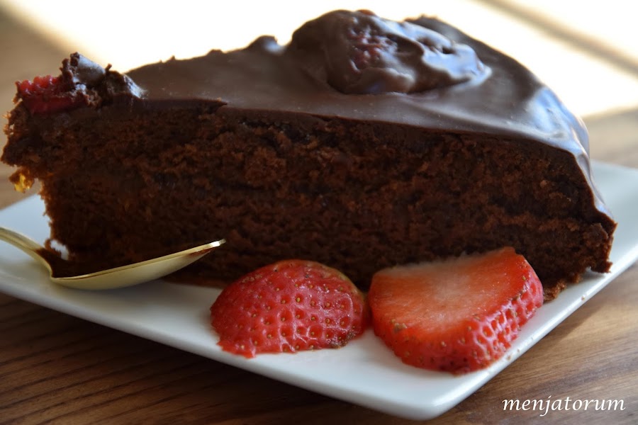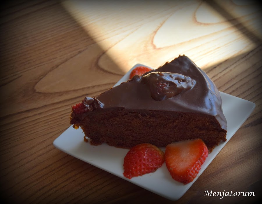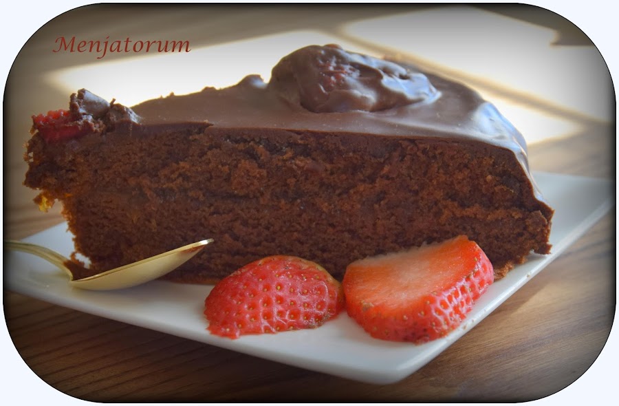 una tarta formada por dos bases de bizcocho de chocolate, separadas por una capa de mermelada de albaricoque y cubierta por otra capa de chocolate negro fundido, un pecado vamos!!!.