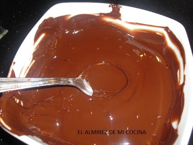 Fundimos el chocolate en el microondas, ya sabes con mucho cuidado que no se queme. Lo vais fundiendo a intervalos cortos.