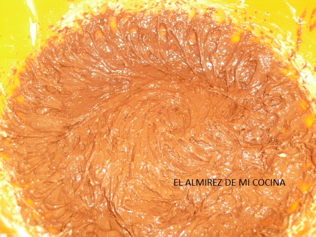 Le añadimos el chocolate fundido mezclando bien y la almendra molida.