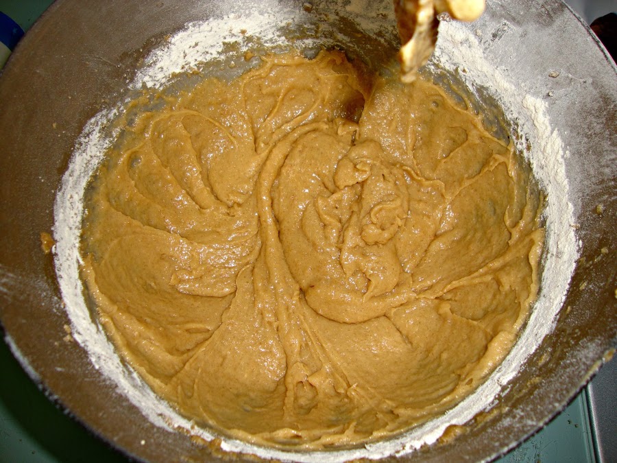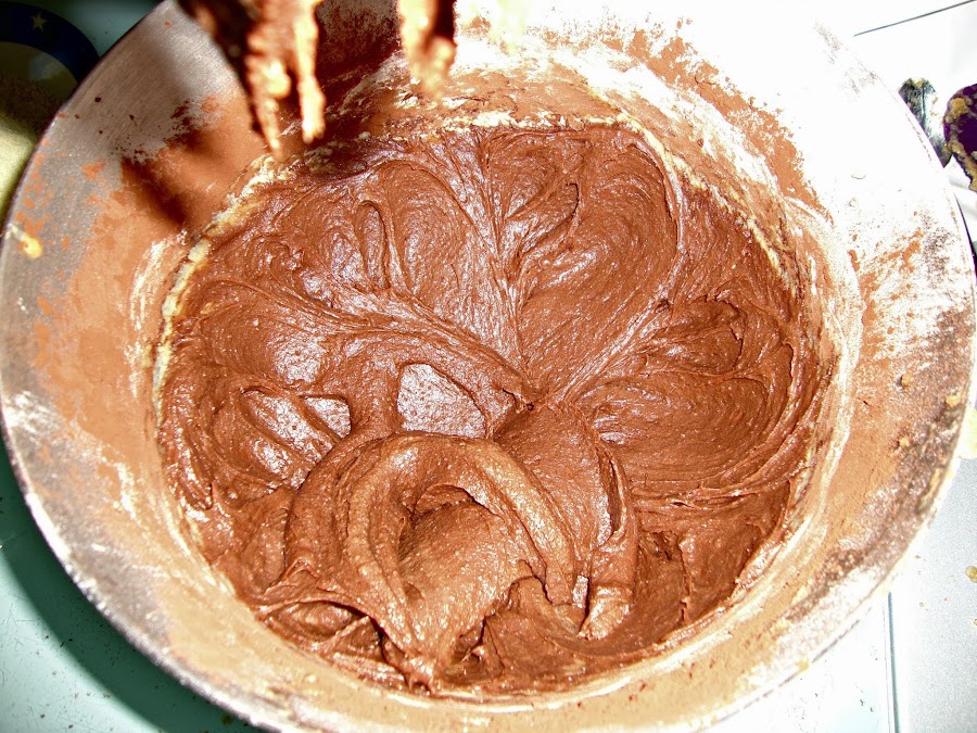 Finalmente se añade la almendra molida (la masa estará muy espesa) y para acabar el chocolate liquido y se mezcla bien hasta que la masa esté homogénea.
