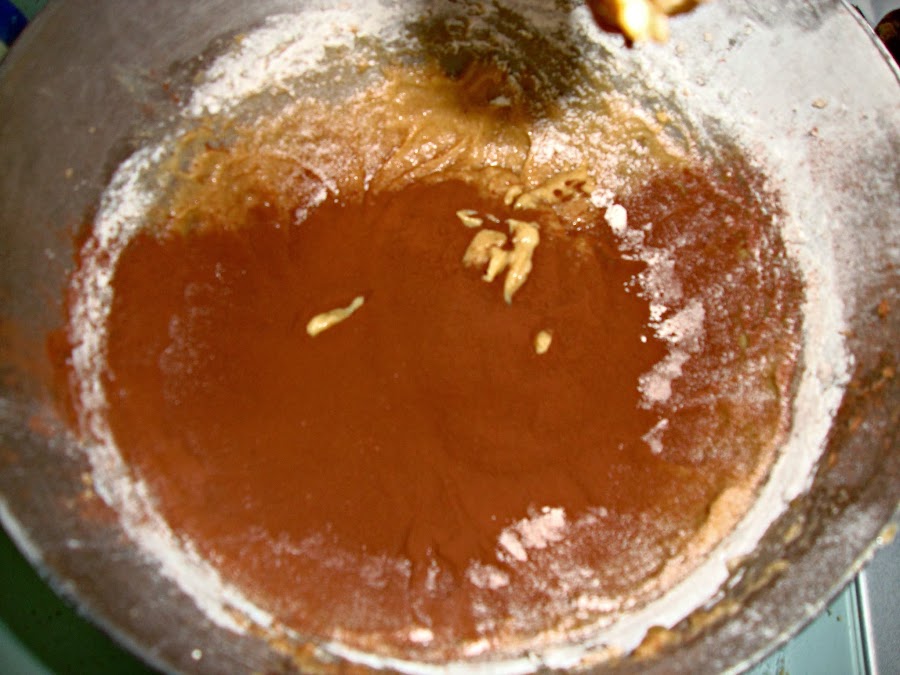 Posteriormente se añade la harina tamizada poco a poco y después el cacao en polvo