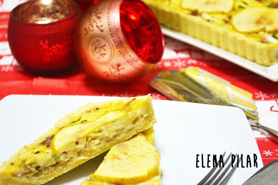 Tarta salada de camembert, cebolla caramelizada y manzana: