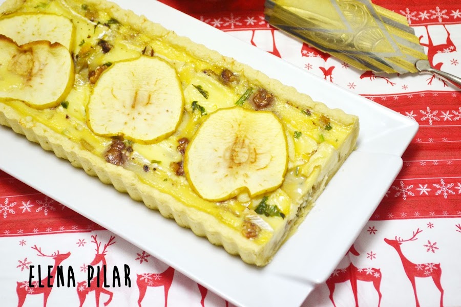 Una tartaleta de queso camembert y cebolla caramelizada, a la que he añadido unas láminas de manzana y unas cuantas nueces. Un relleno súper rico, suave, nada pesado y muy fácil de preparar. La masa de la tarta es, de nuevo, la misma que vengo haciendo desde hace ya algún tiempo, tanto para dulce como para salado; hasta el momento, es la que más me gusta, por encima de cualquiera, así que en lo que no encuentre otra que la supere en cuanto a sabor, textura y comodidad de preparación, continuaré con esta.