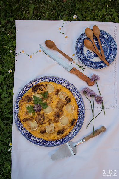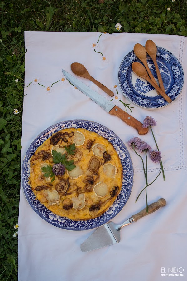 El verano es tiempo de picnics y de comidas al aire libre, de esas que se preparan y se comen más tarde en el campo o en la playa. Aunque la reina indiscutible de estos momentos es sin duda la tortilla de patatas, también son muy interesantes las quiches ,como esta de puerro, calabacín y langostinos (que, por cierto, no lleva lácteos). Hoy te traigo otra alternativa a la que he decidido no ponerle pasta quebrada como base, para hacerla más ligera y que queda buenísima: una tarta salada de cebolla caramelizada, queso y manzana.