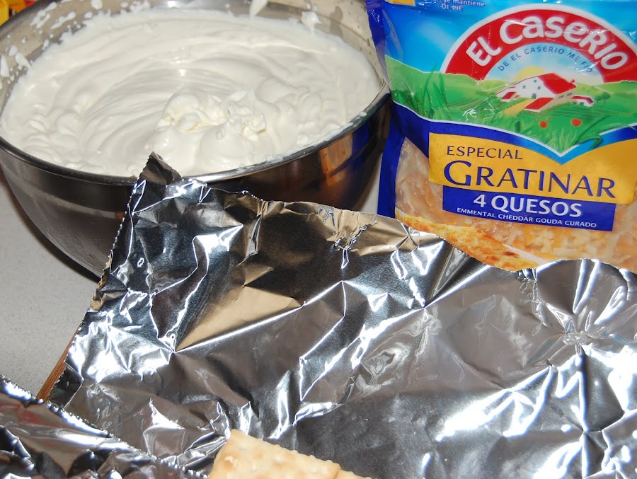 Mezclamos la nata (crema de leche) con el queso rallado
