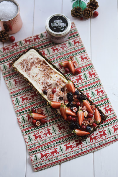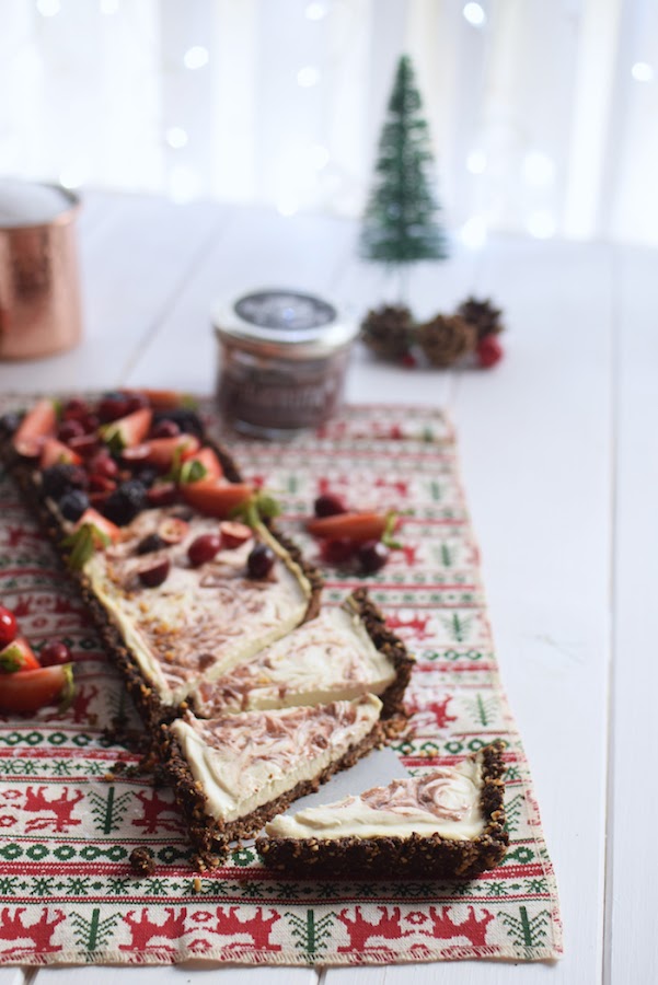 El relleno es como una cheesecake que sólo necesita unas horas de frío para coger consistencia. Se conserva genial en la nevera así que podéis prepararla hoy y olvidaros del postre hasta que os lo comáis en Navidad. Fácil, ¿no?